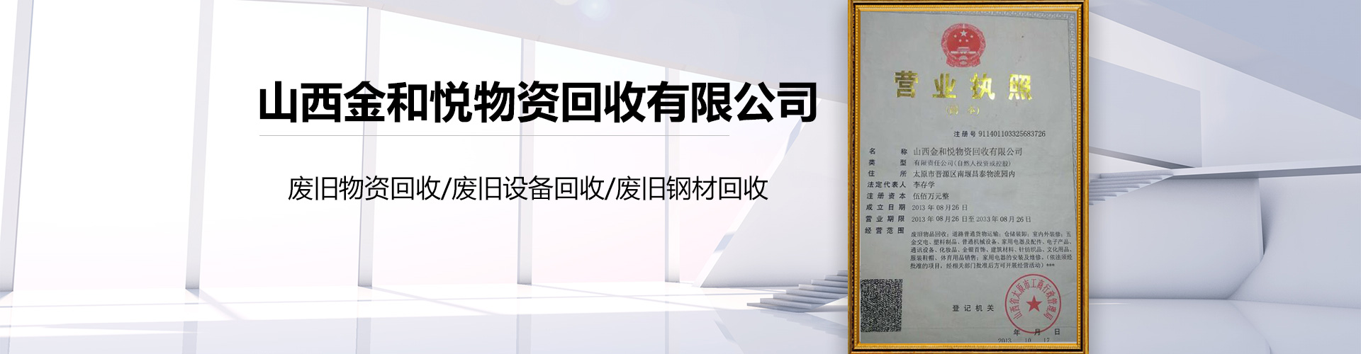 山西金和悅物資回收有限公司是一家從事廢舊物資回收,整廠設備打包回收的公司。主要可回收社會各行各業的廢舊物資,包括廢鋼廢鐵/廢銅廢鋁/稀有金屬/廢不銹鋼/廢舊機械設備/電線電纜/電池電瓶回收以及廢舊廠房整體設備打包回收。免費上門估價,現場付款,可帶工人上門,清理庫房。我公司立足于環保,利用閑置的資源,變廢為寶,循環利用,取之于民,用之于民,讓有效的資源得到合理的利用,充分體現它的價值。公司堅持“以質量求生存,以信譽求發展”的基本原則,為山西及周邊地區的企業、單位和個人提供安全、快捷的服務。歡迎各界有廢料或需要拆除的人士來電洽談業務!